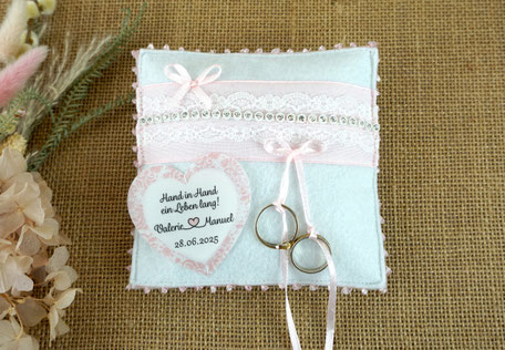 Diese zauberhaften Ringkissen sind sicherlich ein farblicher Eyecatcher auf Eurer Hochzeit und wird auf dem Altar mit Ihren Ringen glänzen.